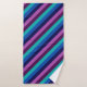 Une serviette de bain avec un design motif coloré de bandes diagonales en turquoise cool, bleu océan, bleu marine, pourpre prune et lavande.