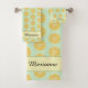 Éclairez votre salle de bain avec le charme frais et vibrant de l'ensemble personnalisé de serviettes de bain en citron vert jaune. Avec des motifs joyeux sur le thème du citron et l'option de customiser avec votre nom ou monogramme, cet ensemble est parfait pour ajouter une touche de soleil à votre routine quotidienne. Un délicieux mélange de citrons jaunes et de feuilles verdoyants apporte une ambiance animée et citronnée à votre décor de salle de bains. Cet ensemble de serviettes combine la commodité des serviettes en coton de qualité supérieure avec l'élégance de la personnalisation personnalisée. Le design au citron ensoleillé ajoute une esthétique ludique mais élégante, ce qui le rend parfait pour des intérieurs modernes, de ferme ou à thème tropical.