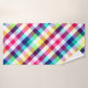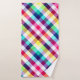 Une serviette de bain avec un design motif plaid coloré aux couleurs arc-en-ciel.