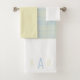 Serviette de bain monogramme couleur jaune pâle et bleu rayé. monogramme personnalisé.