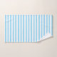 Un ensemble de trois serviettes assorties à rayures vives capri bleu et blanc.