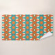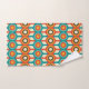 Serviette de bain moderne du milieu du siècle. Cercle motif. Couleurs rouge, marron, turquoise et jaune.