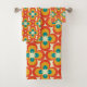 Serviette de bain moderne du milieu du siècle. motif de fleurs. Couleurs rouge, turquoise, jaune et marron.