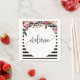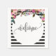 Serviette de cocktail en papier floral rayé noir e