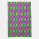 Un motif de harlequin de vert et de pourpre est transformé en Jacquard espiègle avec un recouvrement des contours et du fleur de lis de diamant d'or, créant un amusement et un motif coloré parfaits pour n'importe quelle célébration de mardi gras influencée par Nouvelle-Orléans.