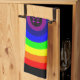 Cette superbe serviette de cuisine est conçue pour les lesbiennes. Il dispose d'un arc-en-ciel rond avec deux petits symboles féminins roses, debout côte à côte au centre de l'arc-en-ciel.
