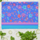Un joli linge de cuisine, avec un motif de fleurs en violet, turquoise, rose et orange sur un arrière - plan bleu ciel, d'un collage de papier peint à la main par Judy Adamson. Vous pouvez facilement changer la couleur de l'arrière - plan, si vous le souhaitez, en utilisant le bouton Modifier.