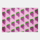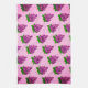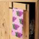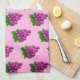 Serviette de cuisine avec illustration de raisins violets contre un arrière - plan lilas pâle.