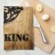 Personnalisez cette serviette de cuisine unique "One of a Kind" Bull Elk Il est doté d'une silhouette de taureau noir bouillonnant sur un Arrière - plan de bois rustique et les mots..."BBQ KING"! Design D'Art Original Par L'Artiste Kerry Miller !