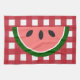 Caractéristiques de conception ce d'amusement un motif checkered rouge de nappe et une tranche de pastèque. Pour personnaliser, cliquez sur dessus la personnaliser il bouton.