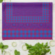 Une serviette de cuisine richement colorée ou une serviette de thé, avec un mélange'n'match design de motifs traditionnels en forme de ogee dans les tons violet et des chèques audacieux en Plum et Bleu éblouissant.