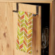Un motif chevron en rayures et aquarelle. Les couleurs sont le rouge, les oranges, les verts et les jaunes avec parfois des mélanges de formes triangulaires.