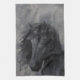 un magnifique portrait de cheval friésien noir avec un ciel nuageux en arrière-plan.