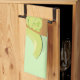 Serviette de cuisine avec un morceau de sourire de pain grillé d'avocat avec des avocats derrière lui. Le texte peut être customisé.