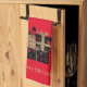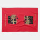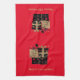 Cette serviette de cuisine est affichée en rouge personnalisé avec une petite pile de paquets de Noël noir et or ainsi que le texte de Noël Joyeux de couleur or mat. Customisez cet objet ou achetez comme indiqué.