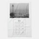 Cette photo noire et blanche comporte une vue romantique de Paris, France comprenant un réverbère iconique. La serviette comporte également un calendrier 2014.