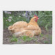 Les amants de poulet apprécieront cette poule de couleur chamois d'orpington se dorant dans le soleil d'après-midi devant la sauge russe