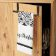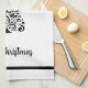 La serviette de cuisine de vacances est présentée dans un dessin festif d'arbre de Noël en noir et blanc. Customisez cet objet ou achetez tel quel.