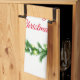 Serviette de cuisine en blanc avec un design festif de couronnes de vacances. Customisez cet objet ou achetez tel quel.