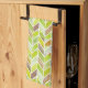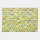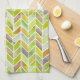 Un motif chevron en rayures et aquarelle. Les couleurs sont le vert, le jaune et le marron avec un mélange occasionnel de formes triangulaires.