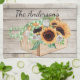 Belle serviette de bain en bois et tournesol, personnalisez avec votre nom