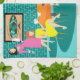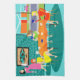 Cette serviette de cuisine hebdomadaire de jeu de carte des rétros femmes comporte un dessin de bande dessinée de quatre femmes modernes de la moitié du siècle à une partie de poule. Elles ont une vie sociale dans une salle à manger élégante. Sur un mur de briques de turquoise et de sarcelle d'hiver, il y a un art moderne de globe de la moitié du siècle la copie étirée de toile, qui est fournie par le magasin de Zazzle de StrangeLittleOnion. Mon, elles ont le bon goût ! Par des portes en verre de glissement, nous pouvons voir l'ivrogne, pelouses vertes de banlieue. À travers la rue, il y a une maison orange lisse avec une voiture rose et blanche garée dans le parking. De retour dans la salle à manger, trois femmes sont assises à une table ronde avec une nappe orange. Il y a un roux dans une robe jaune, une brune dans une robe verte, et une blonde dans une robe rouge. Elles tiennent des cartes dans des leurs mains. Quatre tasses de thé sont sur la table attendant juste pour être rempli par l'hôtesse d'une chevelure de corbeau dans une robe rose d'agitation. Elle porte un plateau avec une carafe de thé étée perché sur elle. Toutes les femmes ont un temps merveilleux, mais elles devraient garder probablement un oeil sur la blonde. Si cette carte qu'elle se tient derrière elle est de retour n'importe quelle indication, elle triche !