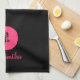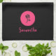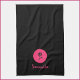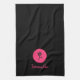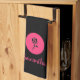 Serviette de cuisine moderne aux accents rose et rose sur un arrière - plan noir. Ajoutez votre nom pour personnaliser.