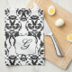 Serviette de cuisine noire et blanche d'initiale de damassé