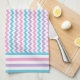 Un élégant Serviette de cuisine ou Serviette de thé, avec un motif chevron en rose bonbon, lavande, turquoise et blanc.