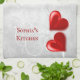 Ajoutez une touche unique à votre cuisine avec une serviette personnalisée Red Hearts. La conception des serviettes de cuisine comprend une paire de coeurs, une vigne feuillue blanche molle contre un arrière - plan gris clair avec un espace à personnaliser avec votre nom. Autres cadeaux disponibles avec ce design ainsi qu'une variété de couleurs.