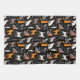 Cute White cat, black cat, tabby cat, Persian cat, Siamese cat et tuxedo cat portent des casquettes sorciers et des costumes d'Halloween avec des chauves-souris et des empreintes de pattes éparpillés.