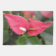 Ces fleurs ouvertes en forme de coeur d'origine tropicale sont aussi connues comme "fleurs de flamants", "fleurs de garçon", "langues peintes" et "palettes de peintre" et symbolisent l'hospitalité, ce qui en fait un excellent choix dans le don d'hôte/hôtesse. On pense aussi que ces fleurs exotiques apportent de la chance et protègent contre le mal. Certains "contes de vieilles épouses" disent que quand la fleur ferme, cela signifie que la pluie arrive. La mythologie, cependant, nous dit que les pétales se ferment au coucher du soleil afin de fournir des logements pour les fées magiques. Ces fées, à leur tour, enchantent les fleurs, c'est pourquoi elles durent si longtemps. Les anthuriums rouges sont représentatifs d'une "passion brûlante" ou d'une "attraction intense du coeur". Les anthuriums symbolisent aussi le bonheur et l'abondance. Ces fleurs spectaculaires ajoutent un bel élément à cette serviette de cuisine charmante. Il est montré dans une orientation "plié en deux" parce que je laisse toujours la mienne drapée sur la poignée du four.