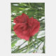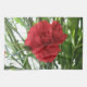 Cette superbe serviette de cuisine présente une photo détaillée d'une magnifique fleur d'oeillet rouge. La photo a été prise en utilisant la macro photographie pour montrer la beauté de cette fleur rouge vif entourée de feuillage vert.
