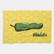 Un piment de shishito vert, également connu sous le nom de kkwari-gochu en coréen, est décoré de motifs inspirés par les motifs coréens et s'assied sur un arrière - plan jaune avec une version plus petite du même motif et un étiquette de script dans le coin. Ce poivre doux est consommé partout en Corée et au Japon, crus et cuits.
