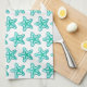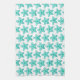 Montrée sur une serviette blanche, cette serviette de cuisine a des images d'étoiles de mer dans les couleurs de l'aqua. Customisez cet objet ou achetez comme indiqué.
