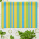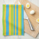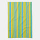 Une serviette de cuisine ou de thé gaie et lumineuse, avec une motif rayée audacieuse en bleu turquoise, vert feuille et jaune or. Une partie de la collection Posh & Painterly 'Daisy Chain'.