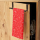 La serviette de cuisine est montrée en rouge avec un imprimé de coeur de Saint-Valentin. Customisez cet objet ou achetez tel quel. Image sous licence