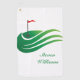 Cette serviette de golf est présentée en couleur blanche avec un imprimé graphique d'art vert du golf.