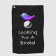 "À la recherche d'un oiseau" avec des objets colorés, des boules de golf et du texte blanc. Personnalisez cette serviette de golf avec votre message et rigolez autour des liens. Vient en plusieurs couleurs. L'art de la balle de golf peut être enlevé ou placé à un autre endroit sur la conception.