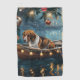 Jetez un coup d'oeil à la magie de la saison des Fêtes avec cette illustration magnifiquement détaillée, montrant un chien fier assis dans un bateau à la décoration festive, glissant à travers un lac serein de Noël. Les lumières scintillantes des pins voisins se reflètent dans l'eau, projetant une lumière chaude et festive qui renforce l'ambiance cosy. Des ornements pendent des côtés du bateau, tandis que des lanternes brillantes éclairent le chemin, créant une scène qui capture l'essence véritable de la chaleur et de la joie de Noël. Cette oeuvre nostalgique apporte une touche de magie de vacances à tout espace, parfait pour ceux qui chérissent l'esprit de la saison.