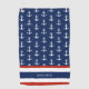 Cette serviette de golf monogrammed nautique en bleu marine clair, blanc et rouge a un texte modèle pour le personnaliser avec votre nom. Le design est composé d'ancres blanches motif et de rayures dessinées à la main.