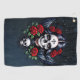 Ange crâne sucre avec Roses. Figure captivante qui incarne la symbiose parfaite de l'esthétique gothique et de l'esprit romantique. L'accent est mis sur une femme au maquillage élaboré de crâne sucré qui brille dans des couleurs vives et montre des motifs délicats sur son visage. Ses grands yeux expressifs captivent le spectateur et véhiculent à la fois force et vulnérabilité. Un motif délicat de perles suspendues donne à la scène une dimension supplémentaire et lui donne l'air presque d'un rêve. un design où la beauté et l'obscurité fusionnent harmonieusement.