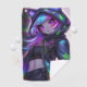 Anime golf meets neon street style in this cat-eared hoodie portrait, splashed with rainbow light and a city-night glow. Vivid purple eyes and pastel hair bring a playful cyberpunk vibe that pops from across the fairway. A fun pick for range sessions, weekend rounds, and anyone who loves manga-inspired golf style.