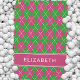 La conception de serviette de golf personnalisée mignonne présente un motif à carreaux argyle rose et vert avec des accents blancs. Une bande rose audacieuse comporte un modèle personnalisé pour le nom ou les initiales. Personnalisez facilement votre conception en choisissant parmi la vaste bibliothèque de polices de caractères de Zazzle, vous permettant de personnaliser le texte avec une police qui correspond parfaitement à votre style et à votre vision ! Pour les demandes de couleur personnalisée, envoyez un message en utilisant le lien "message" dans cette liste. Veuillez inclure un lien ou une description de cette conception spécifique lors de la messagerie.