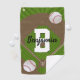 Cette serviette de golf personnalisée a un design de fans de football avec un terrain de baseball et deux balles de baseball illustrées. Personnalisé cette serviette de golf avec un prénom ou un nom et une initiale. Un grand cadeau sportif personnalisé pour donner au fan de baseball de votre vie qui joue au golf.