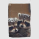 Serviette De Golf Bébé Raccoons se blottit dans la neige tombante