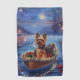 Jetez un coup d'oeil à la magie de la saison des Fêtes avec cette illustration magnifiquement détaillée, montrant un chien fier assis dans un bateau à la décoration festive, glissant à travers un lac serein de Noël. Les lumières scintillantes des pins voisins se reflètent dans l'eau, projetant une lumière chaude et festive qui renforce l'ambiance cosy. Des ornements pendent des côtés du bateau, tandis que des lanternes brillantes éclairent le chemin, créant une scène qui capture l'essence véritable de la chaleur et de la joie de Noël. Cette oeuvre nostalgique apporte une touche de magie de vacances à tout espace, parfait pour ceux qui chérissent l'esprit de la saison.