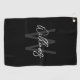 Serviette De Golf Black Modern Script Personnalisé Monogramme et nom