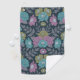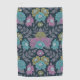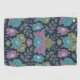 Cette serviette de golf présente des fleurs dans les tons violet, bleu et vert olive entourées de frondes de fougères violettes muettes et de feuilles sur un arrière - plan bleu foncé.