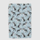 Des chiens de Boston Terrier mignons avec des manteaux noirs et blancs s'assoient et tiennent des os de chien éparpillés et des motifs empreintes de pattes.